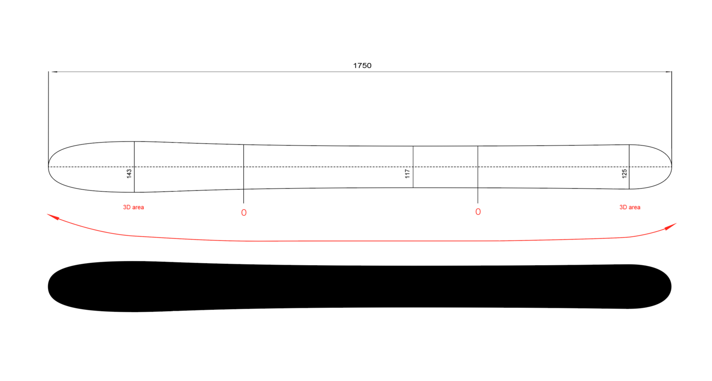 The 3D shape is achieved by raising the effective edges into the air, allowing for more freedom and deeper turns. In conventional 2D-shaped boards, the effective edges at the nose and tail initiate turns, resulting in narrower turns. This is similar to the movement of a four-wheeled vehicle.